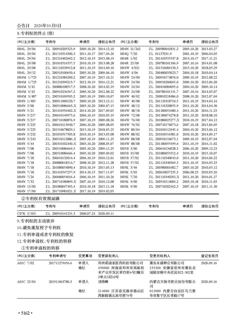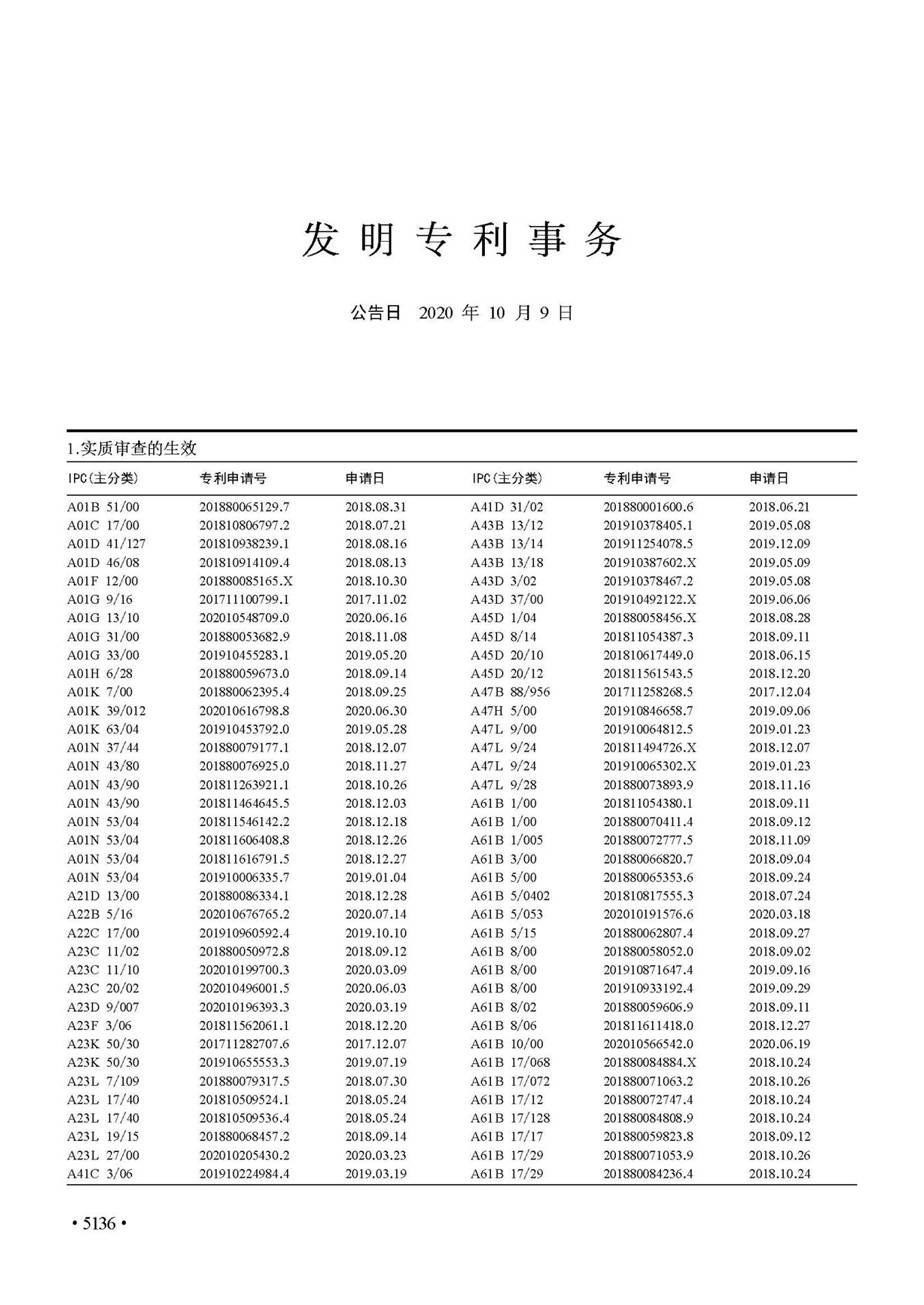 | 發明專利 | 實質審查的生效;專利局對專利申請實質審查的決定;發明專利申請公布后的駁回;發明專利申請公布后的撤回;發明專利申請公布后的視為撤回;專利權的視為放棄;專利權的無效宣告;專利權的終止;專利權的主動放棄;避免重復授予專利權;專利申請或者專利權的恢復;專利申請權、專利權的轉移;專利實施的強制許可;專利實施許可合同備案的生效、變更及注銷;專利權質押合同登記的生效、變更及注銷;專利權的保全及其解除;著錄事項變更;專利權人的姓名或者名稱、地址的變更;開放許可。 |