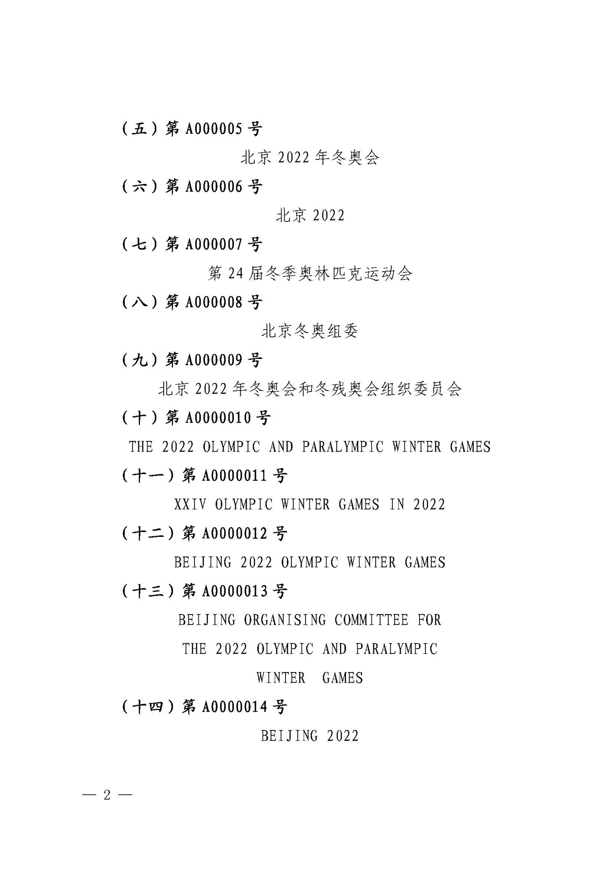 北京2022年冬奧會和冬殘奧會組織委員會自公告之日起享有對上述標志的專有權,有效期10年。