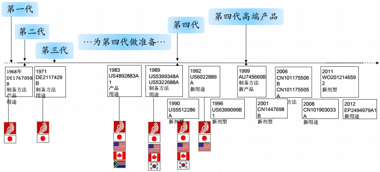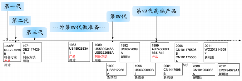 相較于計算機、通信等高速發展的技術領域,藥品行業有其自身的特點,這也導致藥品的專利布局保護不同于其他行業。首先,藥品研發周期非常長,而且耗費的資金量巨大,通常一個新藥的研發投入在10億美元左右。其次,藥品上市前,還必須經過嚴格且復雜的行政審批程序。這些因素導致藥品專利具有少而精的特點,對于核心專利的依賴性很強。