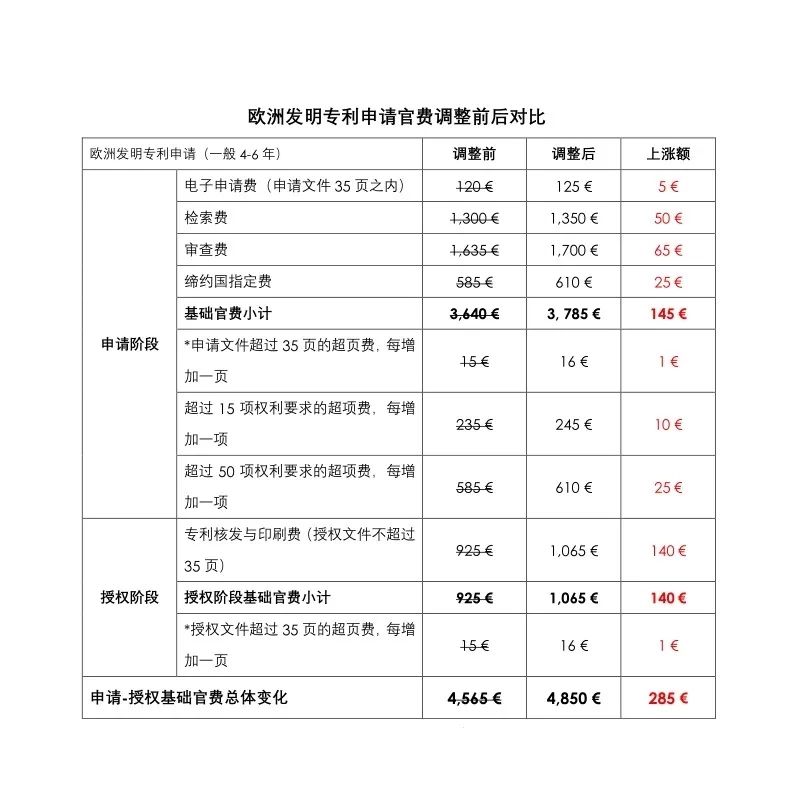 2019年12月12日,EPO行政委員決定,新的收費標準將從2020年4月1日起開始實施。歐洲發明專利申請的官方費用將會適用新的費表,部分費用將會增加。